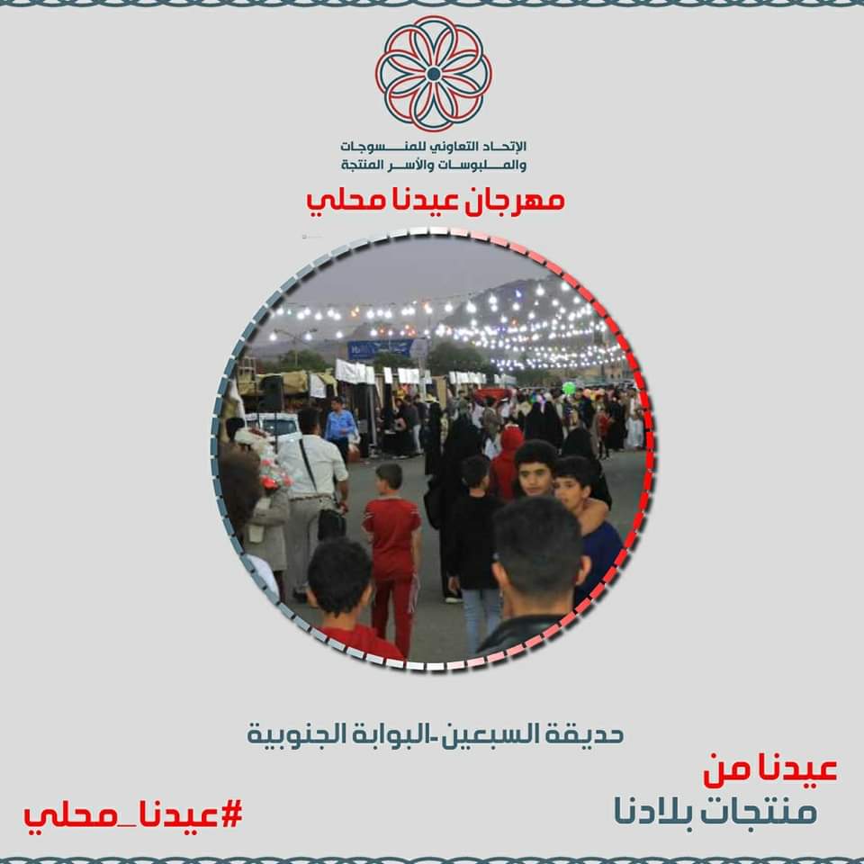 تنطلق بحديقة السبعين في العاصمة صنعاء فعاليات مهرجان “عيدنا محلي” للاتحاد التعاوني للمنسوجات والملبوسات والأسر المنتجة والذي سيتم افتتاحه رسميا غدا السبت.