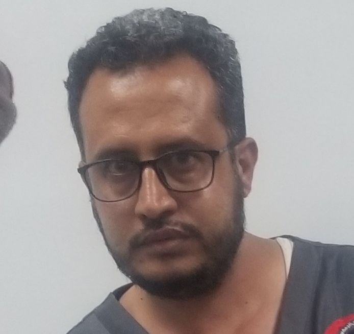 الزميل الصحفي زكريا حسان واحد من المرافقين الذين تم طردهم وزوجته التي اسفعها للعلاج عقب انتقاده للطبيب الموضح بالصورة على تركيزه على القات والانترنت وترك المريضة لأكثر من نصف ساعة دون فحص أو تشخيص.
