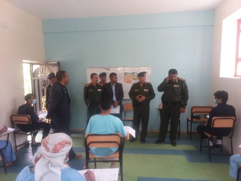 دشن اليوم وكيل وزارة الداخلية لقطاع الخدمات المدنية اللواء عبدالعزيز محفوظ ومعه وكيل مصلحة التأهيل والإصلاح بالداخلية العميد محمد العبالي ومدير عام الإصلاحية المركزية بالأمانة العميد محمد الماخذي أختبارات الثانوية العامة بقسميها العلمي والأدبي للطلاب من النزلاء بإصلاحية الأمانة وعددهم 25 طالبا.
