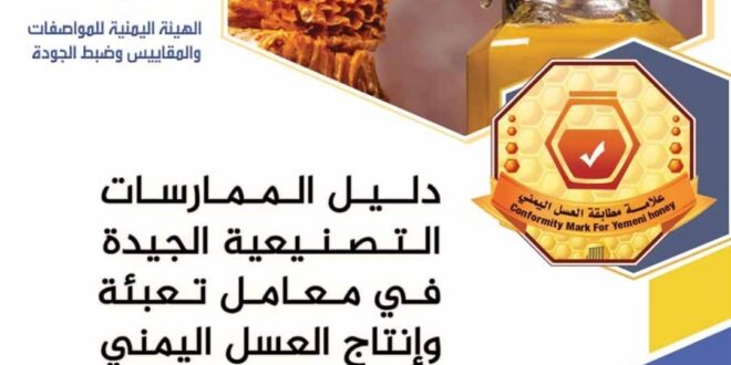 أصدرت الهيئة اليمنية للمواصفات والمقاييس وضبط الجودة دليل الممارسات التصنيعية الجيدة في في معامل تعبئة وإنتاج العسل اليمني .