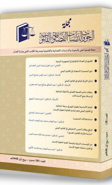 وقد تضمن العدد العاشر عددا مميزا من الأبحاث العلمية والدراسات القانونية لعل أبرزها الطريق إلى العدالة الانتقالية – لفضيلة القاضي/ عبد العزيز البغدادي و أجور السمسرة (السعاية) في القانوني اليمني- لفضيلة الدكتور/ عبد المؤمن شجاع الدين و تداول الأوراق المالية في القانون اليمني- لفضيلة الدكتور/ عبد الخالق صالح معزب.وسلطات مأمور الضبط القضائي والأخطاء الشائعة في مرحلة جمع الاستدلالات- لفضيلة الدكتور/ منير محمد الجوبي.وكذا المبـادئ الأساسية لحقوق المتهـم فـي مرحلة المحاكمـة فـي القانون اليمني وأهم المبـادئ العالميـة لحقــوق الإنسان- لفضيلة القاضي/ أحمد محمد الجندبي.