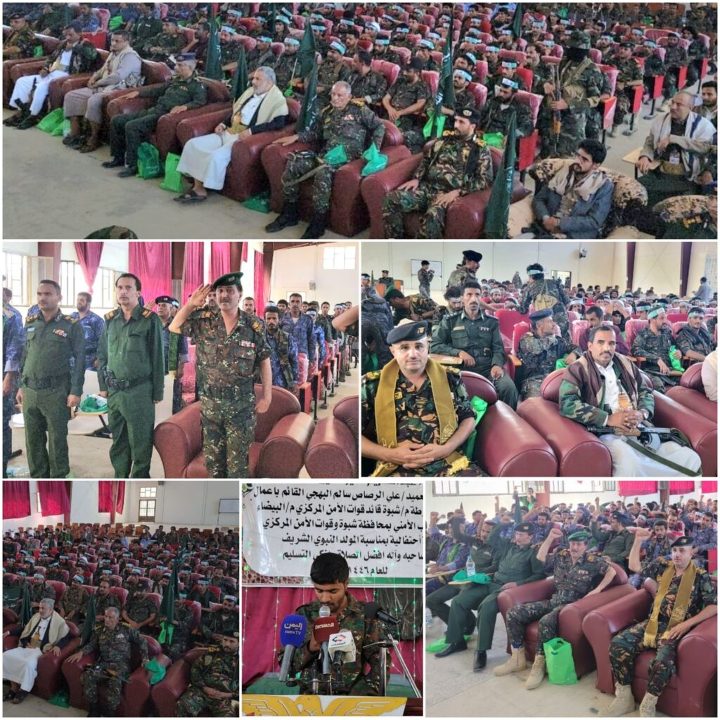 كما تخلل الفعالية التي حضرها ايضا مدير ادراة البحث الجنائي بمحافظة شبوه العقيد ابراهيم زيد حميد الدين ومدير ادارة الرقابه والتفتيش المقدم خالد الجنيد، ومدير الامداد والتموين المقدم عبدالكريم مقبول، ونائب مدير القوى البشريه، الرائد عبدالسلام العامري، و مدير التوجيه المعنوي قوات الامن المركزي الرئد زايد عبدالله الرصاص، وقائدالقوات الخاصه قوات الامن المركزي الرئد جبرالسرحاني،ومدير مديرية الشريه ياسر علي ادريس عرض عسكري لا اشبال قوات الامن المركزي ، وقصائد شعرية عبرت عن عظمة المولد النبوي الشريف على صاحبه وآله أفضل الصلاة وأتم التسليم.