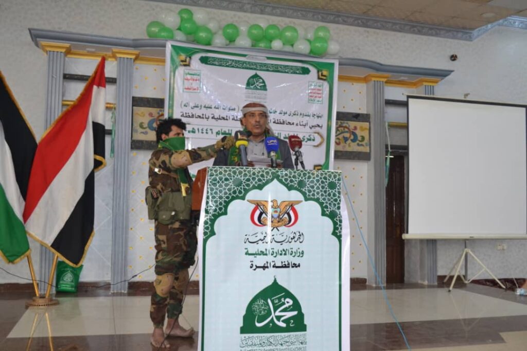 نظمت السلطة المحلية بمحافظة المهرة اليوم، فعالية خطابية بذكرى المولد النبوي الشريف- على صاحبها وآله أفضل الصلاة وأزكى السلام.