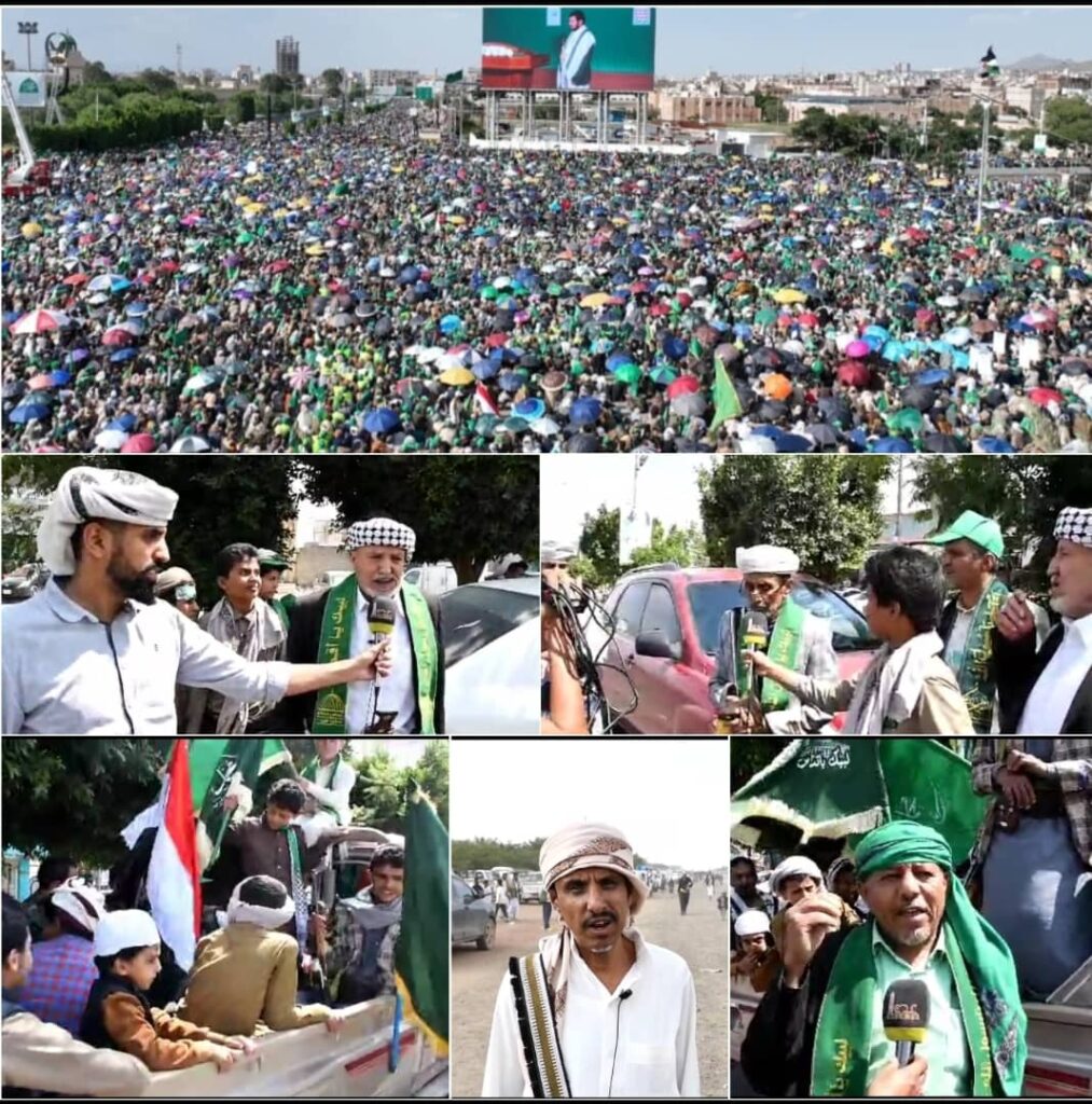 وبعد أكثر من أربع ساعات من التوافد الجماهيري باتجاه ميدان الأحرار من المحافظات الجنوبية والشرقية وكافة محافظات الجمهورية اليمنية اكتمل المشهد المحمدي البديع، فتوهجت عاصمة اليمن ألقاً وشموخاً عمّ الأرجاء..