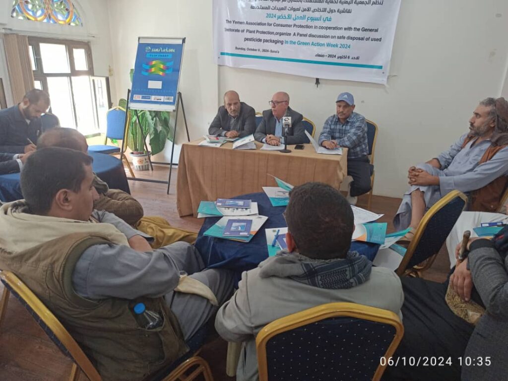 نظمت الجمعية اليمنية لحماية المستهلك بالتعاون مع الإدارة العامة لوقاية النبات بوزارة الزراعة والثروة السمكية والموارد المائية حلقة نقاشية حول التخلص الٱمن لعبوات المبيدات المستخدمة في اسبوع العمل الاخضر 2024.