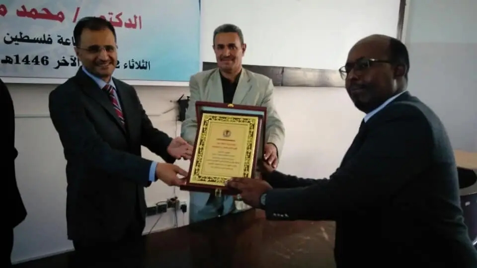 وفي ختام الفعالية قام رئيس جامعة ذمار ونوابه بتسليم درع تكريم الجامعة للفقيد الدكتور محمد مصطفى،إلى نجله سعد بالنيابة عن العائلة.