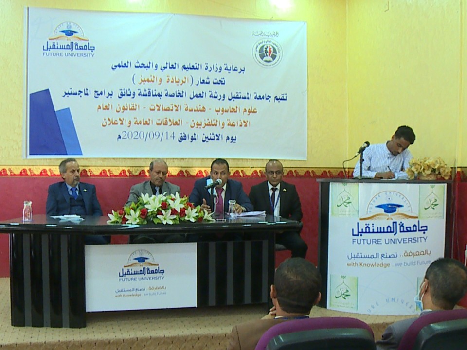ورشة علمية بجامعة المستقبل لإثراء وتقييم برامج. الماجستير في الحاسوب والاتصالات والقانون والاعلام