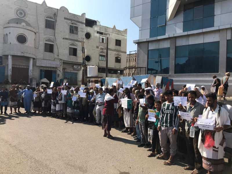 الوقفة الاحتجاجية للموظفين النازحين إلى مناطق الحكومة الشرعية.