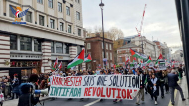 خرجت مسيرة راجلة في العاصمة البريطانية لندن، اليوم السبت، دعماً للشعب الفلسطيني وتنديداً بجرائم العدو الصهيوني في غزة.
