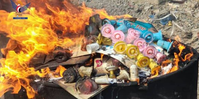 ولفت إلى أنه تم في الحديدة إتلاف مسدسات لعب أطفال خرز مخالفة لقرار مجلس الوزراء رقم ٦٣ لسنة ٢٠١٨م بشأن السلع المقيدة والمحظور استيرادها وكذا اتلاف كمية لهايات أطفال مخالفة للقرار الوزاري رقم ١٨ لسنة ٢٠١٨م .