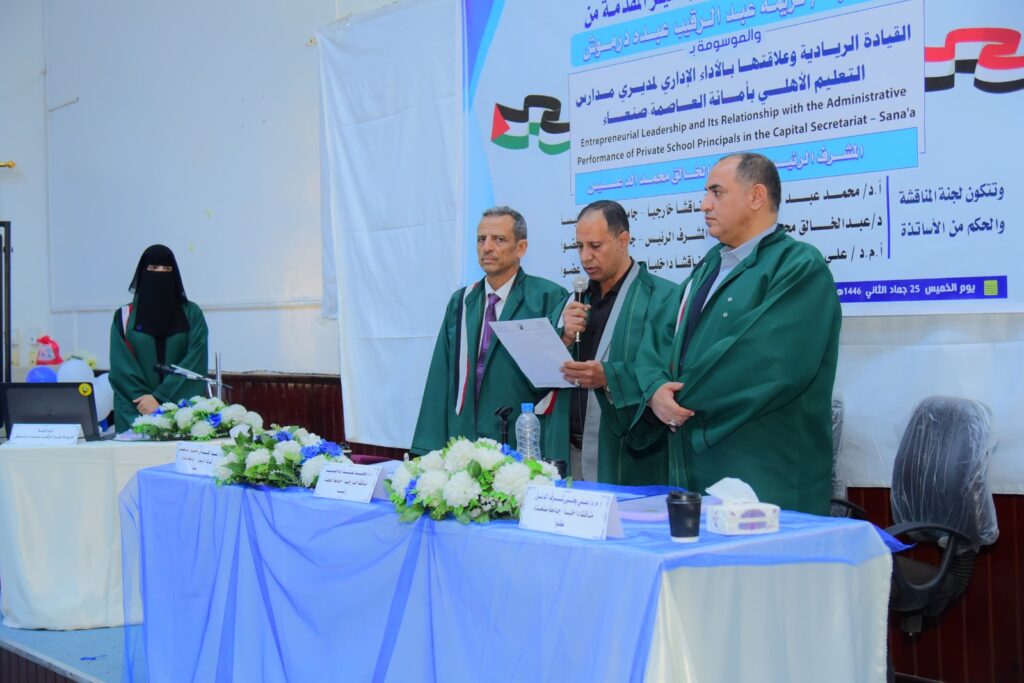 نالت الباحثة كريمة عبدالرقيب عدبه درموش درجة الماجستير بامتياز وبدرجة 95%، من كلية التربية جامعة صنعاء، في الإدارة والتخطيط التربوي، عن رسالتها الموسومة بـ”القيادة الريادية وعلاقتها بالأداء الإداري لمديري مدارس التعليم الأهلي بأمانة العاصمة صنعاء”.
