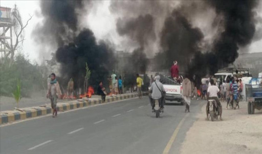 محتجو لحج يقطعون الطريق الرابط بين تعز وعدن