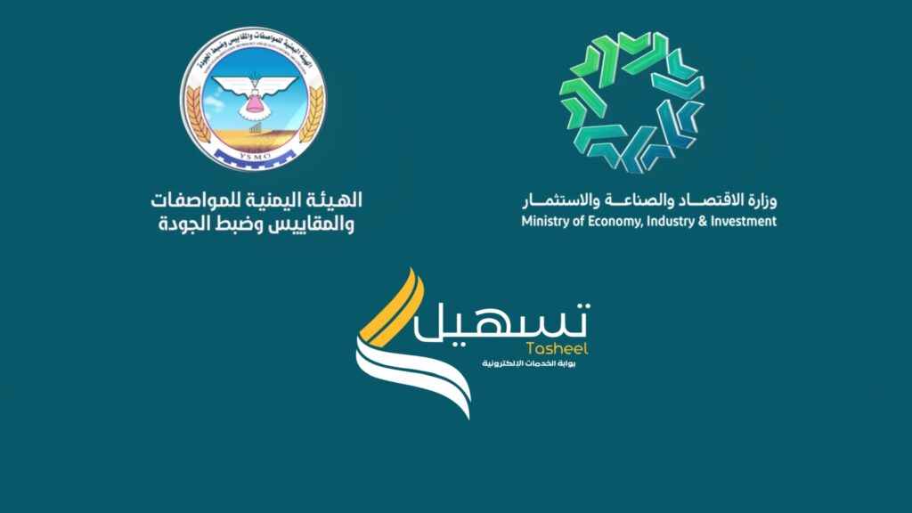 دعت وزارة الاقتصاد والصناعة والاستثمار والهيئة اليمنية للمواصفات والمقاييس وضبط الجودة كافة التجار مصنعين ومستوردين إلى سرعة تسجيل منتجاتهم والتعامل عبر بوابة الخدمات الإلكترونية تسهيل.