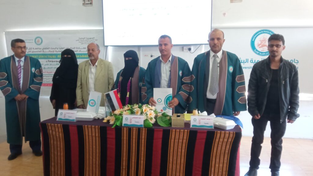 منحت عمادة الدراسات العليا بجامعة آزال للتنمية البشرية الباحثة رويدا ردمان القباطي، رئيس قسم الخدمات الاجتماعية بصندوق رعاية وتأهيل المعاقين، درجة الماجستير في التربية الخاصة بنتيجة 96 بتقدير عام ممتاز، عن رسالتها العلمية الموسومة ” بفاعلية برنامج تدريبي على التمييز اللمسي والبصري لتنمية مهارات النطق لدى الطلاب الصم”