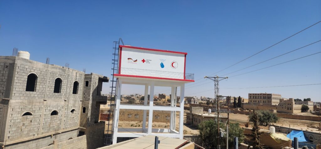 سلمت جمعية الهلال الأحمر اليمني اليوم الخميس مشروع إنشاء خزان برجي سعة 100 متر مكعب وهنجر لمحطة التنقية والمعالجة بمديرية خمر محافظة عمران إلى الجهة المستفيدة والسلطة المحلية بالمحافظة بدعم وتمويل من الوزارة الاتحادية الألمانية للتعاون الاقتصادي والتنمية عبر الصليب الأحمر الألماني، حيث قام أعضاء اللجنة المكلف بتسليم المشروع بمعاينة كافة الإعمال المنفذة على الطبيعة من قبل المقاول المنفذ للمشروع بحسب وثائق المشروع ومطابقة جدول الكميات لجميع الإعمال مطابقة للمواصفات والعينات التي تم اعتمادها وحسب شروط العقد وذلك بحضور السلطة المحلية بمديرية خمر ونائب رئيس الهلال الاحمر اليمني فرع عمران ومهندس مؤسسة المياه محافظة عمران والمهندس عبدالغني المكس ووجهاء وأعيان المديرية ومحمد مجاهد عليان ممثل مكتب مجاهد عليان للمقاوﻻت.