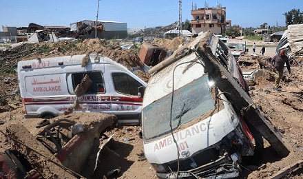 استهداف صهيوني ممنهج لسيارات الاسعاف وطواقمها بغزة