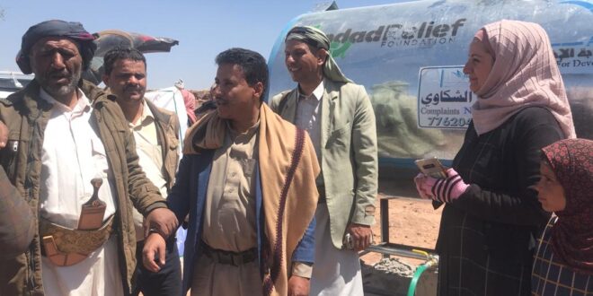 دشنت اليوم مؤسسة انجيلا للتنمية والاستجابة الانسانية. ممثلة بالدكتوره انجيلا ابواصبع رئيس المؤسسة. وبحظور الأخوة عبدالسلام النواب نائب مدير عام فرع الأمانة العامة للمجلس الأعلى لإدارة وتنسيق الشؤون الانسانية والتعاون الدولي لمحافظة صنعاء. و طلعت حسن منسق ادارة المخيمات محافظة صنعاءَ العمل في مشروع خزانات مياه الشرب للمخيمات النازحين في مخيم باب الملكة. و مخيم الثلوث و مخيم المحجر ومخيم صرف القديمة إضافة إلى مخيم شبام الغراس بمحافظة صنعاء والذي تنفذه مؤسسة أنجيلا بتمويل من إمداد ريف Imdad relief ويستفيد منه أكثر من. 20100 من السكان في المناطق المستهدفة وخلال الافتتاح أكدت الدكتوره انجيلا رئيسة المؤسسة بأن المؤسسة لن تآلوا جهدا للاستمرار بدعم هذه المشاريع الخدميه التي توفر الخدمة للفئات الأشد فقرا في المجتمع لا سيما في ظل الظروف الصعبة التي تعيشها البلاد مستعرضة أهمية المشروع الذي يثمثل في تركيب خزانات مياة الشرب مع توصيل المياة للسكان بالوايتات للتخفيف من معاناتهم والصعوبات التي يواجههوها نتيحة انعدام مصادر المياة النقية في المخيمات كما أشادت بدور بالاخت ألفت جمعان منسقة كتلة المياة في اليونسيف التي نسقت للمشروع من جهة أشاد الاخ عبدالسلام النواب نائب مدير عام المجلس الاعلي لادارة وتنسيق الشؤون الانسانية بالدور المهم الذي تقوم به مؤسسة انجيلا للاخوة النازحين. متمنيا استمرار هذه الأعمال الإنسانية التي تتلمس وتوفر احتياجات النازحين وتوفير مايمكن توفيرة لتخفيف معاناتهم في مخيمات النزوح