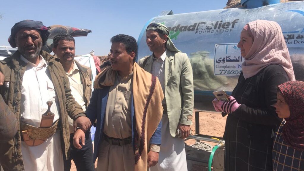 دشنت اليوم مؤسسة انجيلا للتنمية والاستجابة الانسانية. ممثلة بالدكتوره انجيلا ابواصبع رئيس المؤسسة. وبحظور الأخوة عبدالسلام النواب نائب مدير عام فرع الأمانة العامة للمجلس الأعلى لإدارة وتنسيق الشؤون الانسانية والتعاون الدولي لمحافظة صنعاء. و طلعت حسن منسق ادارة المخيمات محافظة صنعاءَ العمل في مشروع خزانات مياه الشرب للمخيمات النازحين في مخيم باب الملكة. و مخيم الثلوث و مخيم المحجر ومخيم صرف القديمة إضافة إلى مخيم شبام الغراس بمحافظة صنعاء والذي تنفذه مؤسسة أنجيلا بتمويل من إمداد ريف Imdad relief ويستفيد منه أكثر من. 20100 من السكان في المناطق المستهدفة وخلال الافتتاح أكدت الدكتوره انجيلا رئيسة المؤسسة بأن المؤسسة لن تآلوا جهدا للاستمرار بدعم هذه المشاريع الخدميه التي توفر الخدمة للفئات الأشد فقرا في المجتمع لا سيما في ظل الظروف الصعبة التي تعيشها البلاد مستعرضة أهمية المشروع الذي يثمثل في تركيب خزانات مياة الشرب مع توصيل المياة للسكان بالوايتات للتخفيف من معاناتهم والصعوبات التي يواجههوها نتيحة انعدام مصادر المياة النقية في المخيمات كما أشادت بدور بالاخت ألفت جمعان منسقة كتلة المياة في اليونسيف التي نسقت للمشروع من جهة أشاد الاخ عبدالسلام النواب نائب مدير عام المجلس الاعلي لادارة وتنسيق الشؤون الانسانية بالدور المهم الذي تقوم به مؤسسة انجيلا للاخوة النازحين. متمنيا استمرار هذه الأعمال الإنسانية التي تتلمس وتوفر احتياجات النازحين وتوفير مايمكن توفيرة لتخفيف معاناتهم في مخيمات النزوح