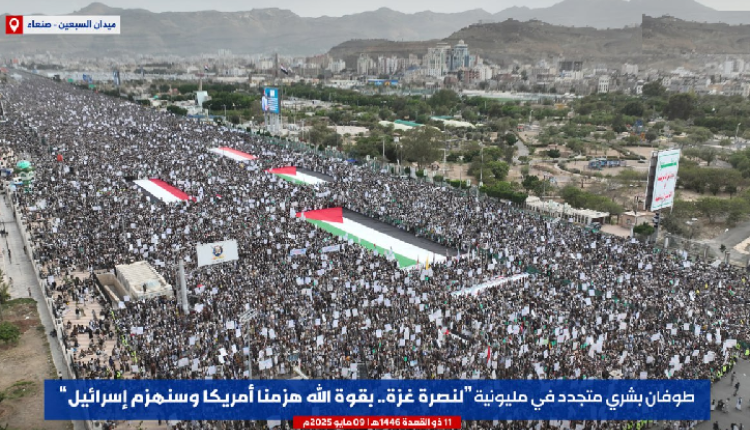 وأوضح المحتشدون أن خروجهم في المسيرات المليونية تعبيرا عن الحمد والشكر لله سبحانه وتعالى على الفشل الأمريكي، وتحد للعدو الصهيوني، وثبات على الموقف الحق ونصره ومؤازره للشعب الفلسطيني ومجاهديه الأعزاء.