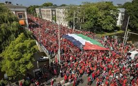 تجمع عشرات الآلاف من المتظاهرين، ومنهم عائلات مع أطفالها، في هولندا امس الأحد للاحتجاج على حصار الاحتلال الإسرائيلي على قطاع غزة وسياسة الحكومة الهولندية بشأن حرب الإبادة.