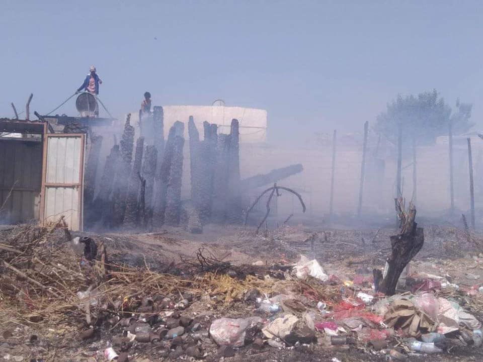 حريق يلتهم منزل احد النازحين بمدينة الخوخة