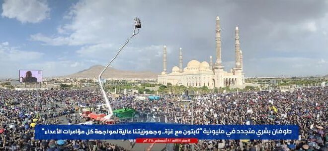 الشعب اليمني يؤكد ثبات الموقف مع غزة ويعلن الجهوزية لمواجهة كل مؤامرات الاعداء