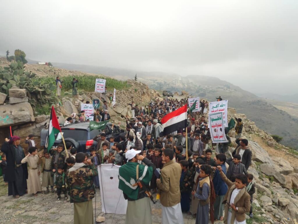 شهدت ساحة ضلاع الأشمور والافقر بمحافظة عمران اليوم مسيرة جماهيرية نصرة للقضية الفلسطينية وتنديدًا بالمجازر الجماعيةالصهيونية وتجويع سكان قطاع غزة تحت شعار ”مع غزة جهاد وثبات لمواجهة أبشع إبادة وأخبث مؤامرات”.