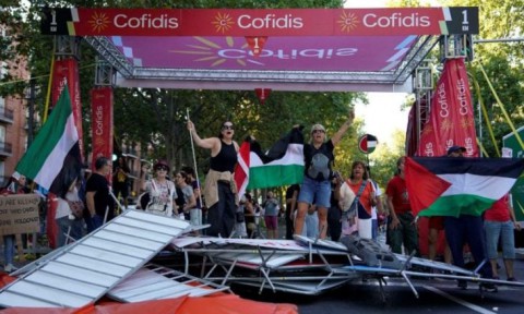 وأطلق المتظاهرون صيحات فرح عندما أعلن المنظمون إلغاء المرحلة الأخيرة من السباق قبل خط النهاية بـ56 كيلومترا. وراحوا يرددون “فلسطين فازت بلا فويلتا (طواف إسبانيا)”.