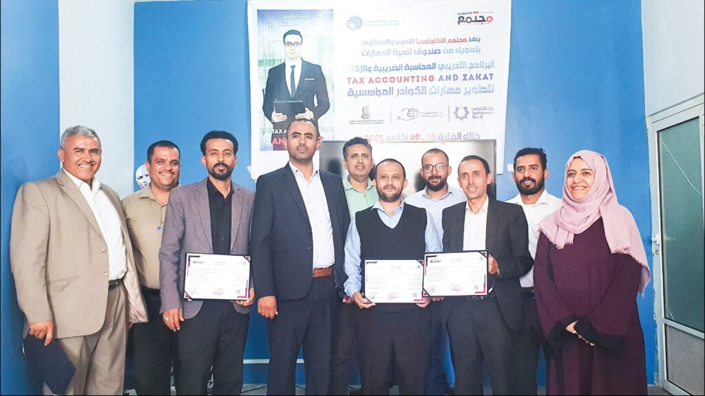 هدف البرنامج بتمويل وإشراف من صندوق تنمية المهارات وتنفيذ مجتمع التكنولوجيا للتدريب والاستشارات في 5 أيام إلى تأهيل ١٦ مشاركا في فهم وإعداد الإقرارات الضريبية والزكوية بدقة ووفقاً للأنظمة والتشريعات المعمول بها في الجمهورية اليمنية.