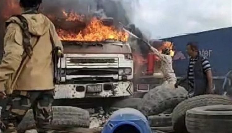 حريق يلتهم شاحنتين في ميناء الحاويات بعدن