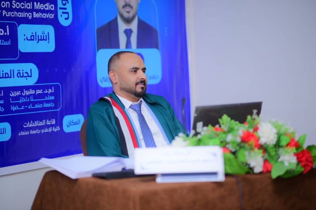 نال الباحث درهم أمين أحمد يحيى الورافي، اليوم الأربعاء، الدكتوراه مع مرتبة الشرف من قسم العلاقات العامة والإعلان بكلية الإعلام، جامعة صنعاء عن أطروحته الموسومة بـ”مصداقية إعلانات المشاهير في مواقع التواصل الاجتماعي وانعكاسها على سلوك الشراء لدى المستهلك اليمني”.