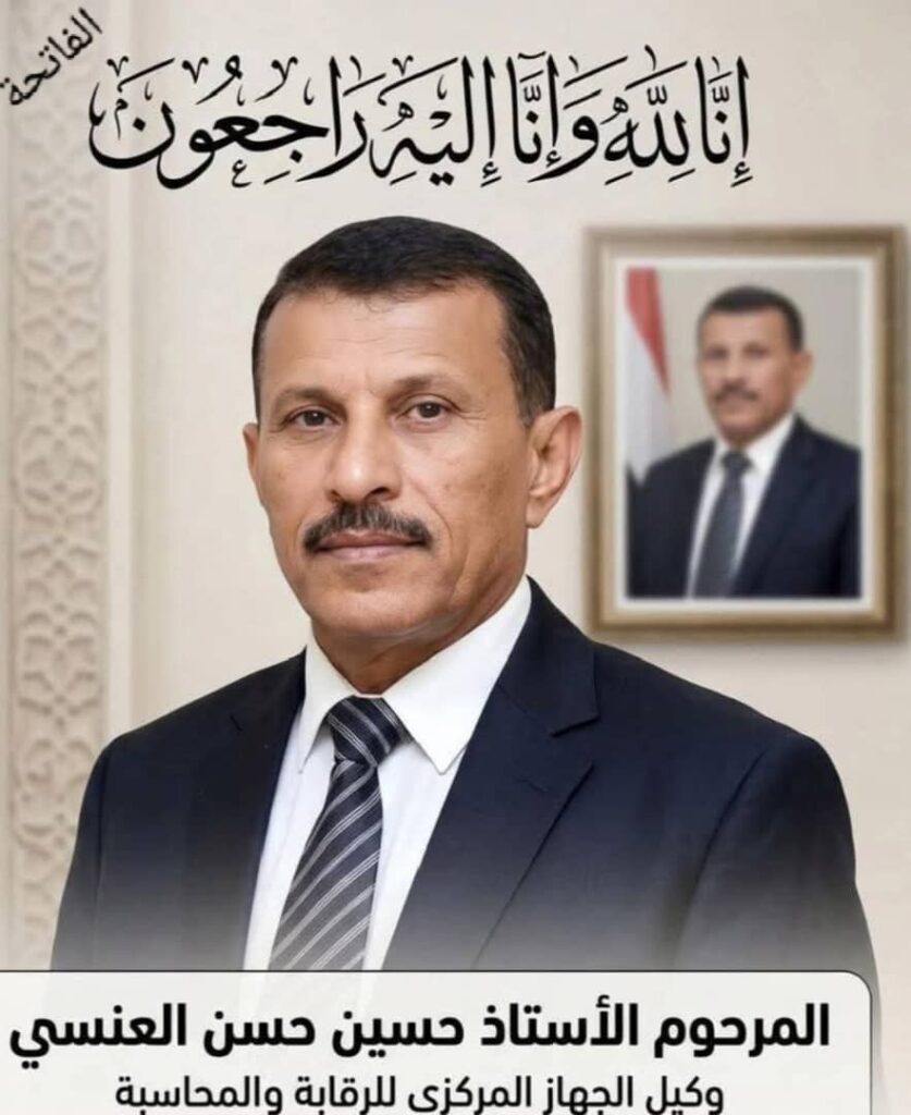 ونوّه الدكتور العرجلي في برقيته التي وجّهها إلى نجل الفقيد القاضي مراد حسين العنسي – رئيس محكمة خمر الابتدائية – وإلى إخوانهوكافة آل العنسي في الجوف وإب، بمسيرة الفقيد الناصعة في العمل الوطني، وما اتسم به من أمانة وإخلاص وتفانٍ في أداء مهامهالرقابية والمحاسبية.