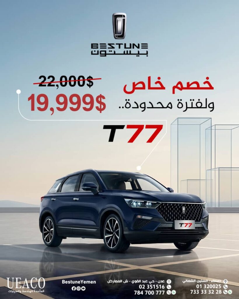 أعلنت الشركة المتحدة للهندسة والسيارات UEACO عن إطلاق عروض وتخفيضات خاصة بمناسبة عيد الأضحى المبارك، شملت عدداً من السيارات الحديثة التابعة لعلامتي بيستون ودونج فينج ، وذلك لفترة محدودة، في إطار حرص الشركة على تقديم خيارات متنوعة تلبي تطلعات العملاء في السوق اليمنية.