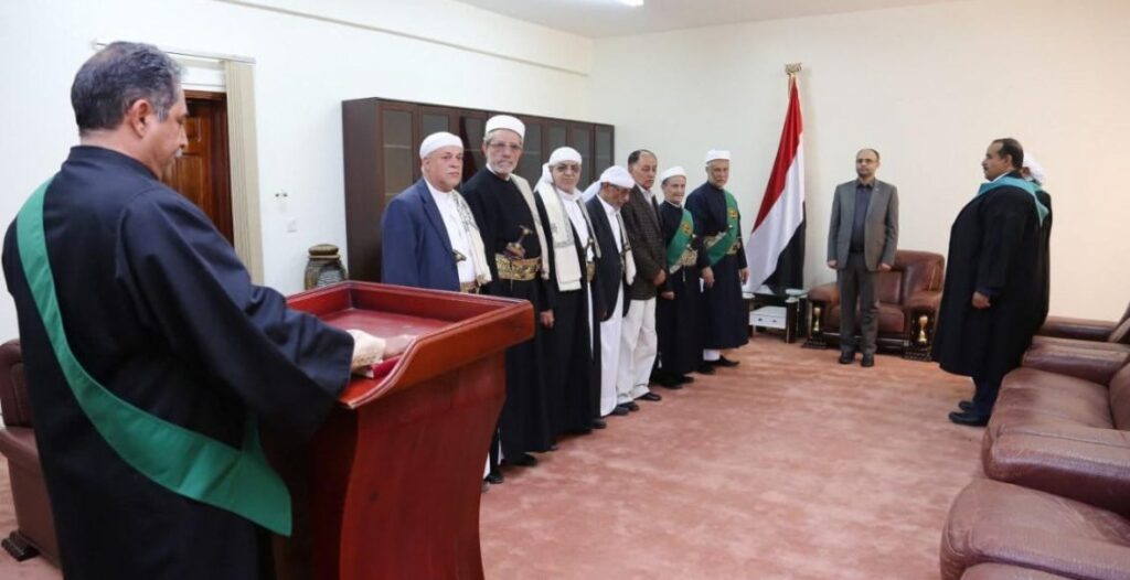 أدى اليمين القانونية أمام فخامة المشير الركن مهدي المشاط رئيس المجلس السياسي الأعلى اليوم الأثنين، عدد من القضاة بمناسبة تعيينهم أعضاء في المحكمة العليا، بحضور رئيس مجلس القضاء الأعلى القاضي أحمد المتوكل ورئيس المحكمة العليا القاضي عصام السماوي.