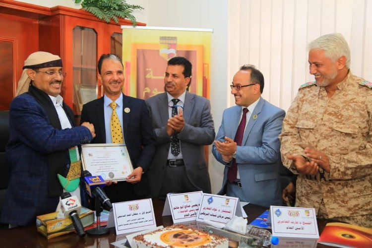 في حفل أكاديمي برعاية الفريق أول/ د. سلطان أحمد السامعي. عضو المجلس السياسي الأعلى & الرئيس الفخري لمجموعة أصدقاء بريكس، إحتفل برلمان شباب البريكس على هامش إحتضان جامعة العلوم الحديثة لإجتماع برلمان شباب البريكس لنهاية العام٢٠٢٠م، بإعلان الأكاديمية الأمريكية الدولية للتعليم العالي والتدريب لرئيسها البروفسور/ حاتم الحسون، منح درجة الدكتوراه الفخرية في التخطيط الإستراتيجي للأخ/ جمال سعيد الخليدي لإستشرافه جودة الأداء وتطوير أعمال البريكس في اليمن أمام أطماع قوى العدوان وأجندتها بعدوانها وحصارها الاقتصادي على الشعب اليمني..