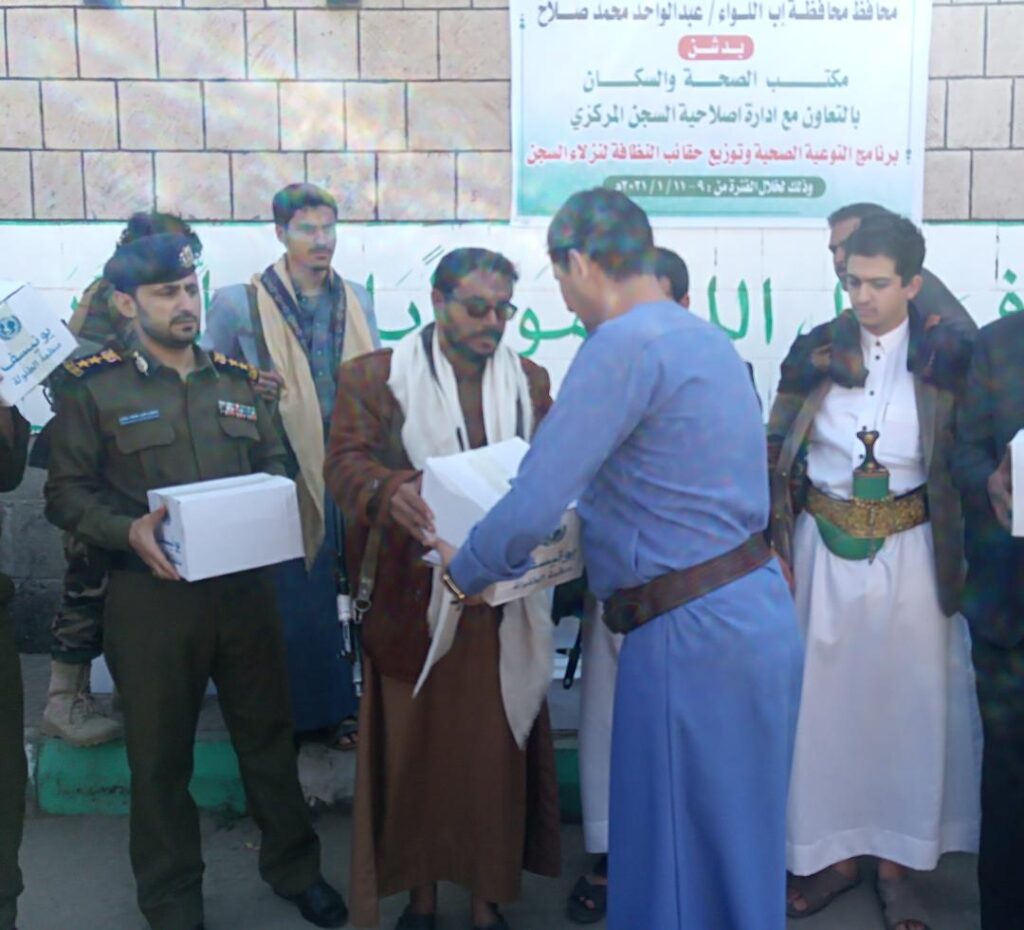 وأكد مدير عام الإصلاحية بالمحافظة على الالتزام بالاجراءات الوقائية وتنظيف وتعقيم الإصلاحية باقسامها المختلفة إلى جانب توزيع الحقائب الصحية للنزلاء والتي تحتوي على منظفات وصوابين وأدوات نظافة صحية حرصا على صحتهم ووقايتهم من الامراض المعدية .. مشيدا بدعم واهتمام مدير عام أمن محافظة إب تجاه الإصلاحية ونزلائها والعاملين فيها.