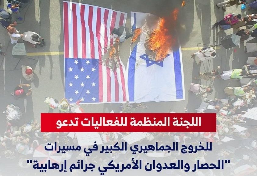 ففي العاصمة صنعاء حددت اللجنة المنظمة ساحة باب اليمن مكانا لمسيرة “العدوان والحصار الأمريكي جرائم إرهابية” عصر غد الاثنين .