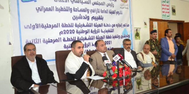 من جانبه أشاد رئيس هيئة الأراضي والمساحة والتخطيط العمراني القاضي عبدالعزيز مجاهد العنسي بالجهود الجبارة من قبل مهندسي وخبراء الهيئة في سبيل تنفيذ الخطة المرحلية الاولى من الرؤية الوطنية والتي بلغت نسبة الانجازفيها 90 %.