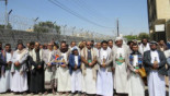 إلى ذلك نظم عدد من موظفي شركة النفط اليمنية والفروع والنقابات التابعة لها أمس وقفة احتجاجية أمام مبنى الأمم المتحدة بالعاصمة صنعاء، في جمعة “القرصنة على سفن الوقود جريمة شاملة بشراكة أممية كاملة “منددين باستمرار احتجاز دول التحالف السعودي للسفن النفطية.