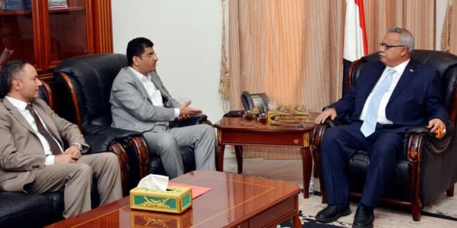 التقى رئيس الوزراء الدكتور عبدالعزيز صالح بن حبتور اليوم بصنعاء نائبه للشئون الاقتصادية وزير المالية الدكتور رشيد أبو لحوم ونائب محافظ البنك المركزي أحمد لطفي.