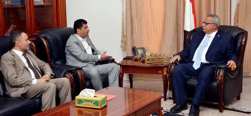 التقى رئيس الوزراء الدكتور عبدالعزيز صالح بن حبتور اليوم بصنعاء نائبه للشئون الاقتصادية وزير المالية الدكتور رشيد أبو لحوم ونائب محافظ البنك المركزي أحمد لطفي.