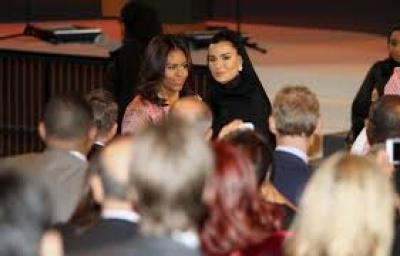 ويتابع” في أواخر عام 2015، كان فريق ميشيل أوباما يضع اللمسات الأخيرة على رحلة إلى الشرق الأوسط، وكانت الشيخة موزا بنت ناصر قد دعت السيدة أوباما للتحدث في قمتها التعليمية السنوية في الدوحة، حيث ستروج السيدة الأولى لمبادرتها(دع الفتيات تتعلمن)، وكانت السيدة أوباما وفريقها على تواصل دائم مع الشيخة موزة، وكل رسالة بريد إلكتروني بين السيدة الأولى وصاحبة السمو الملكي، وموظفيهم – كل رأي شخصي، وحجز، وتغيير خط سير الرحلة وتفاصيل أمنية – كانت تصل إلى اعضاء وكالة الأمن القومي السابقين على أجهزة كمبيوتر في أبوظبي”.