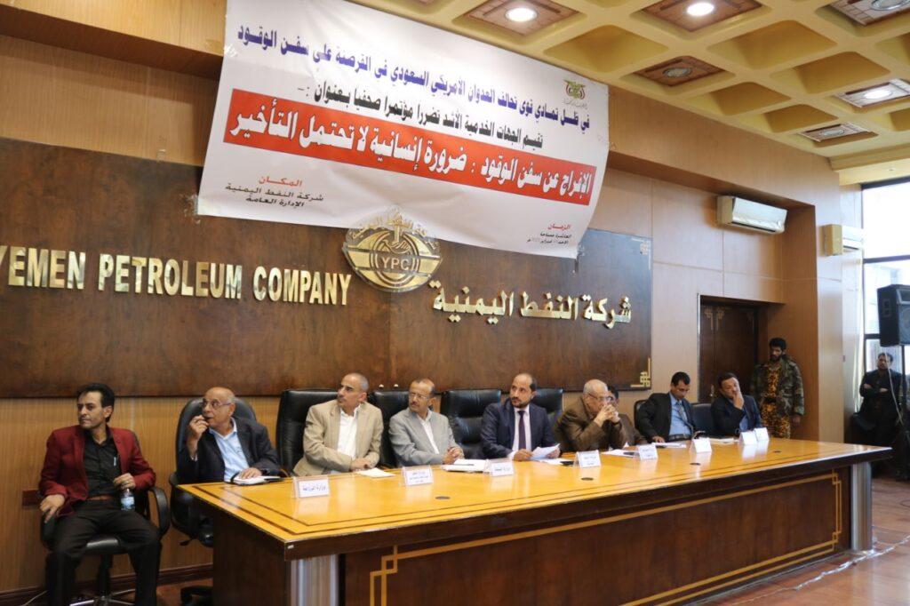 أقيم اليوم بصنعاء مؤتمر صحفي نظمته شركة النفط اليمنية والذي ضم ممثلي وزارات الصحة والكهرباء والاتصالات والصناعة والتجارة والزراعة والبيئة والنظافة بأمانة العاصمة الآثار والتداعيات لجريمة احتجاز السفن على الأداء الخدمي في ضل تمآدي قوى تحالف العدوان الإمريكي السعودي في القرصنة على سفن الوقود.