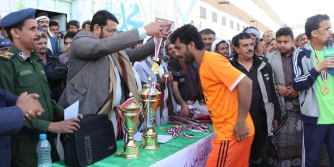 حقق فريق القلعة كاس بطولة “نصرمن الله” لكرة القدم اليوم والكرة الطائرة والتي نظتمها الإصلاحية المركزية بامانة العاصمة بمناسبة اليوم الوطني للصمود ضد العدوان فيما حقق فريق الغفران المركز الثاني في المنافسة التي اقامتها الاصلاحية ضمن فعاليات المناسبة الوطنية لمدة شهر بمشاركة ست فرق رياضية