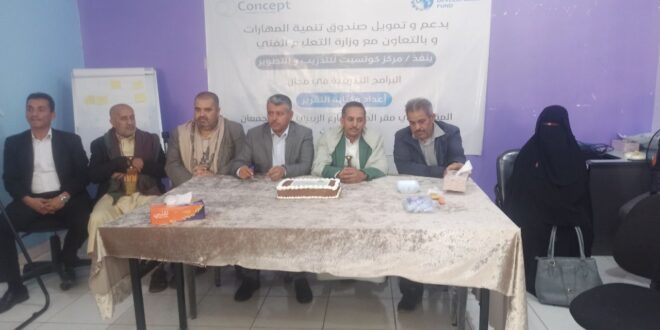 وفي الاختتام بحضور مساعد المدير التنفيذي لصندوق تنمية المهارات عبد الله زهرة ومستشارا الصندوق الدكتور شايف جارالله وشمس الدين شرف الدين ومدير عام التدريب عبد الإله المحطوري استعرض نائب المدير التنفيذي لمعهد كونسبت للاستشارات الاستثمارية حسين الحظأ أنشطة وبرامج المعهد في مختلف الجوانب وخططه المستقبلية لتطوير هذه البرامج وتوسيعها وكذا تفعيل مجالات التعاون والشراكة مع وزارة التعليم الفني وصندوق تنمية وتطوير المهارات وكافة الجهات الرسمية والقطاع الخاص.