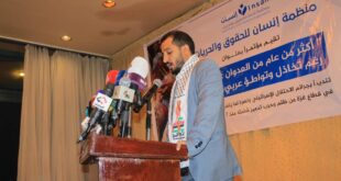 اليمن الحرالاخباري/صنعاء/ علي عبًاس الاشموري، تحت شعار اكثر من عام من العدوان علئ فسطين وبتخادم وتوطئ عربي ودولي.. اقامت منظًمة انسان للحقوق والحرًيات اليوم بصنعاء مؤتمرا صحفيًا استعرضت فيه جرائم الكيان الصهيوني الغاصب خلال عام .. وفي المؤتمر أكد الاستاذ/ ابراهيم اسماعيل الوزير .مدير منظًمة انسان للحقوق والحريات . ان …