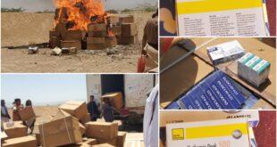 اليمن الحرالاخباري/ أتلف مركز حزم الجوف الجمركي اليوم كمية من الأدوية منتهية الصلاحية وغير القابلة للاستخدام الآدمي. وأوضح نائب مدير المركز محمد يحيى شيبان، ل (سبأ)، أن الكمية التي تم إتلافها شملت 56 كرتوناً منتهي الصلاحية منها 47 كرتون مضاد حيوي وسبعة كراتين قطرة عيون وأنف واثنين كراتين …