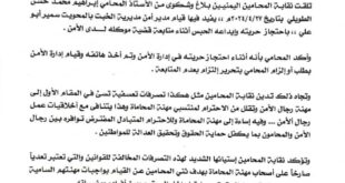 أكمل القراءة »نقابة المحامين تستنكر تعامل مدير أمن الخبت التعسفي مع المحامي إبراهيم الطويلي وتطالب الجهات الرسمية والنيابة العامة بالتحقيق ومحاسبة من يسئ لمهنة المحاماة
