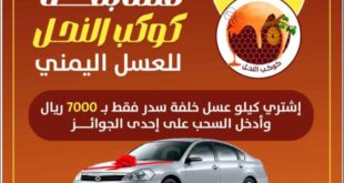 اليمن الحر الاخباري/خاص أعلن محل كوكب النحل للعسل اليمني الكائن في العاصمة صنعاء- الحصبة سوق الروني امام صنعاء مول- عن اقامة المسابقة الكبرى للمواطنين تتيح امامهم فرصة للفوز بأربع جوائز أولها سيارة سامسونج ورابعها دبة عسل سدر أصلي وبينهما الفوز بجهاز تليفون نت عشرين أ(وشاشة “x”سارت) وقال المحل في بيان …