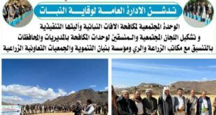 اليمن الحر الأخباري/معين محمد دشنت الإدارة العامة لوقاية النبات بوزارة الزراعة والري بالتنسيق مع مكتب الزراعة والري بمحافظة إب اليوم، مشروع وحدة المكافحة المجتمعية لمكافحة الآفات النباتية في قاع ذمران بمنطقة دخلة عويدين بمديرية يريم. يهدف المشروع بإشراف اللجنة الزراعية السمكية العليا، إلى المكافحة المتكاملة للآفات النباتية وتعزيز …